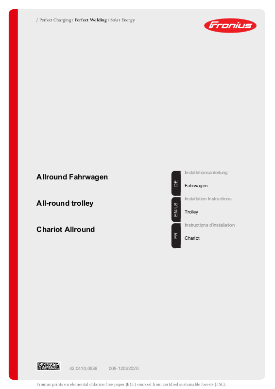 Fronius prints on elemental chlorine free paper (ECF) sourced from certified sustainable forests (FSC).