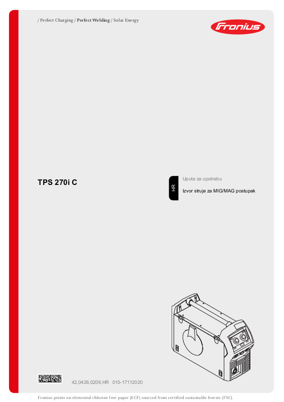 Fronius prints on elemental chlorine free paper (ECF) sourced from certified sustainable forests (FSC).