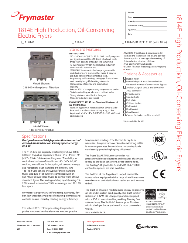 • An RE17 frypot that meets ENERGY STAR® guide-