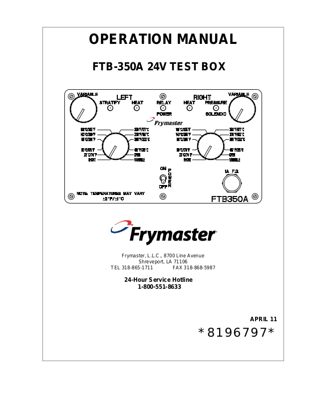 Frymaster, L.L.C Shipping Address: 8700 Line Avenue, Shreveport, Louisiana 71106