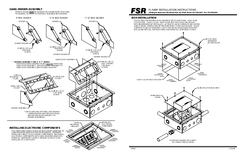 BOX, ALONG WITH ALL SUPPLIED ITEMS, AND REINSTALL TEMPORARY COVER.