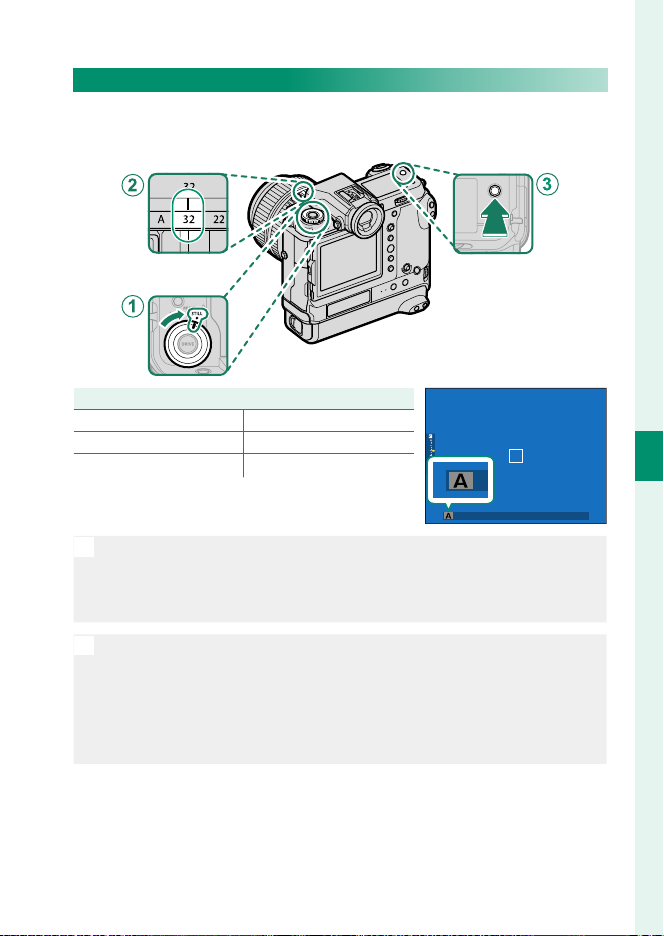 to a function button, pressing the button displays a L icon and stops aperture down to the
