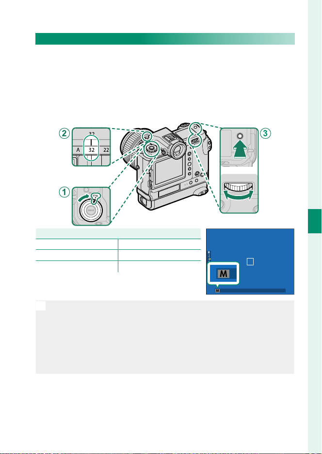 at current settings is shown by the exposure indicator; adjust shutter speed and aperture until the desired exposure is reached.