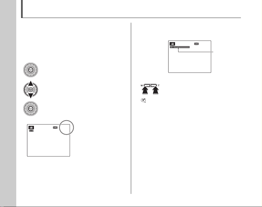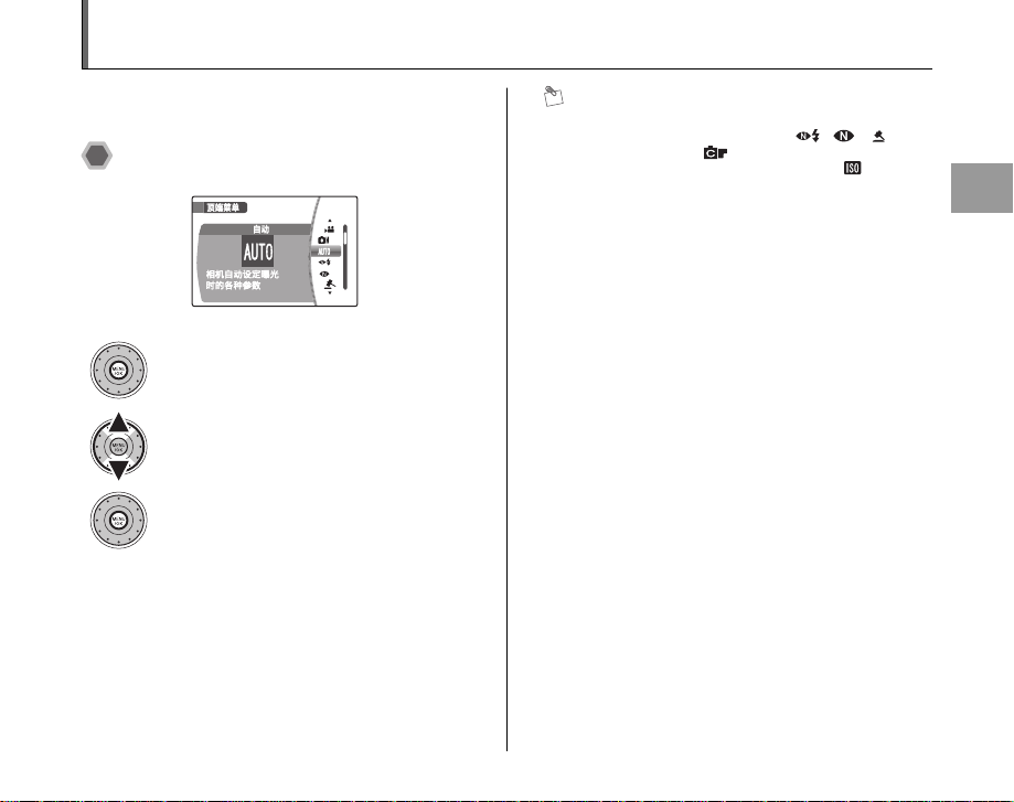 按 MENU/OK (菜单 / 确认)打开顶端菜单选择 [ 拍摄菜