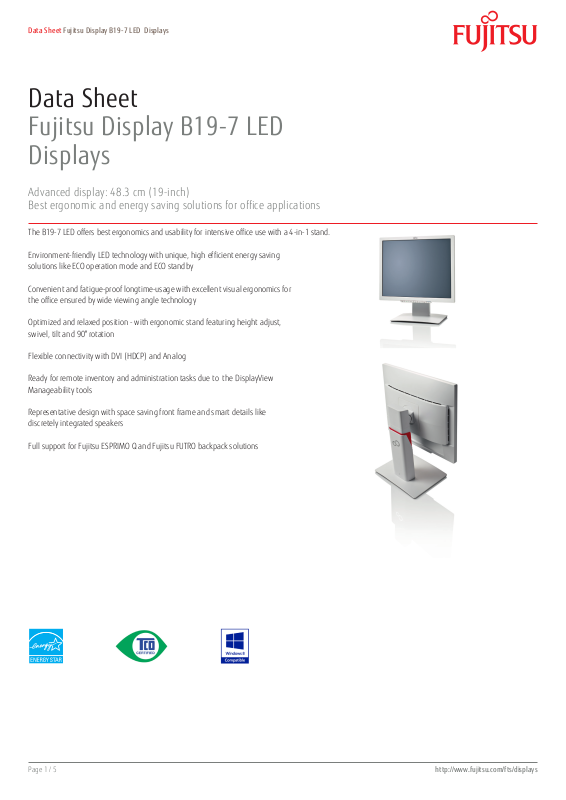 Learn more about Fujitsu Display B197 LED, please contact your Fujitsu sales