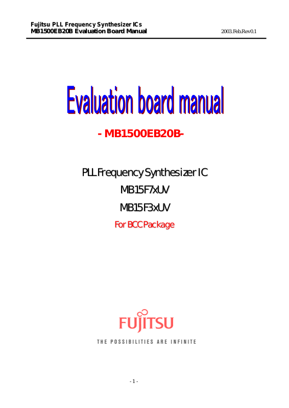 The MB1500EB20B is the evaluation board for MB15F7xUV and MB15F3xUV in BCC package. You