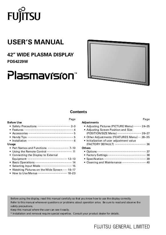 Before using the display, read this manual carefully so that you know how to use the display correctly.