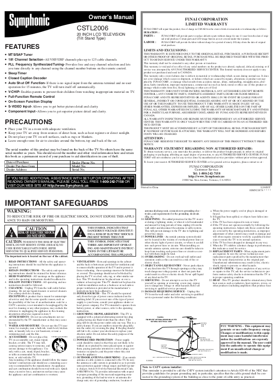 AT TACHMENTS - Do not use attachments not recommended by the TV manufacturer as they may cause
