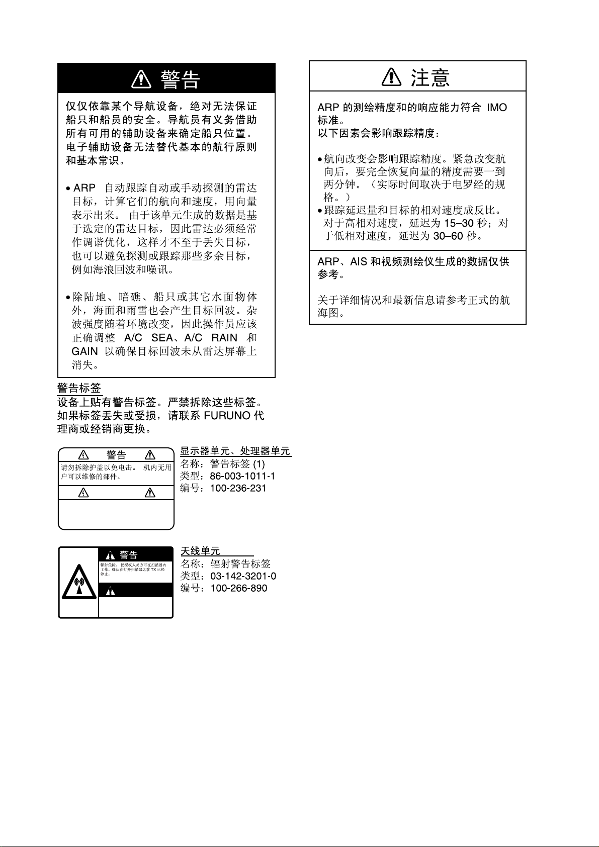 • 对因使用不当、被非授权代理或第三方改装设备(含软件)所造成的损害,FURUNO 概