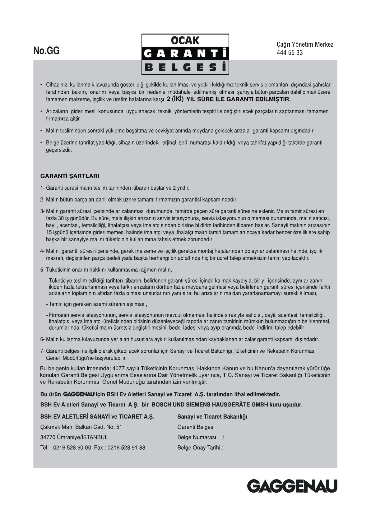 Elektronik hatasıGaggenau müşteri hizmetlerine haber