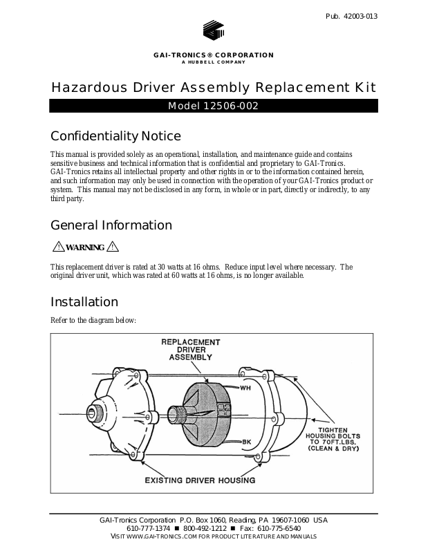 GAI-Tronics Corporation P.O. Box 1060, Readi ng, PA 19607-1060 USA