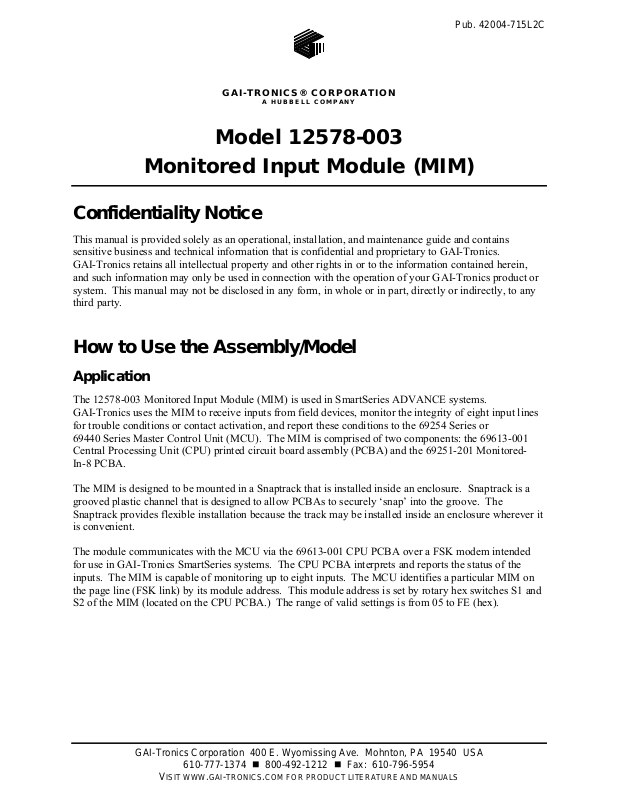 Model 12578-003 Monitored Input Module (MIM) Page 2 of 12