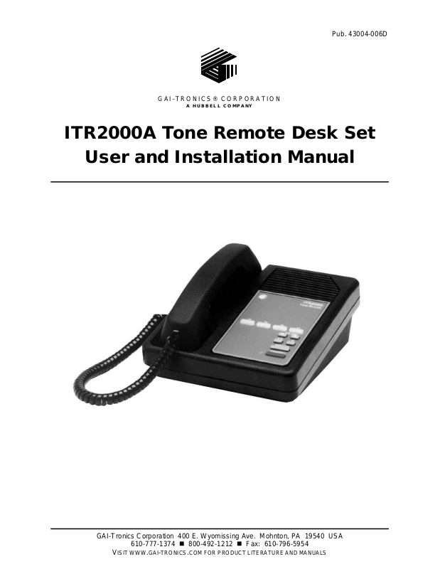 ISIT WWW.GAI-TRONICS.COM FOR PRODUCT LITERATURE AND MANUALS