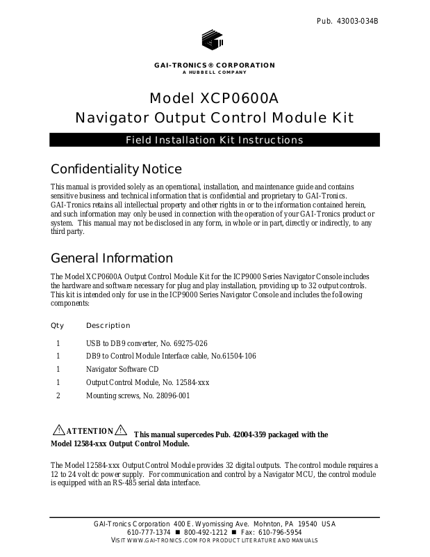 Model XCP0600A Navi gator Output Control Module Kit Page: 2 of