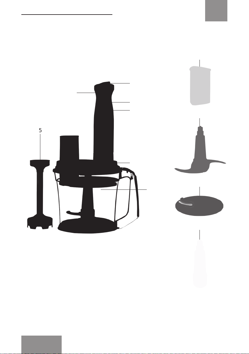 Погрузите прибор в подготовленные продукты или жидкости. Для включения прибора нажмите и удерживайте выключатель (2). Регулятором (4) установите желаемую