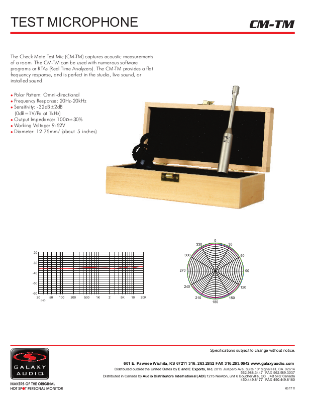 The Check Mate Test Mic (CM-TM) captures acoustic measurements