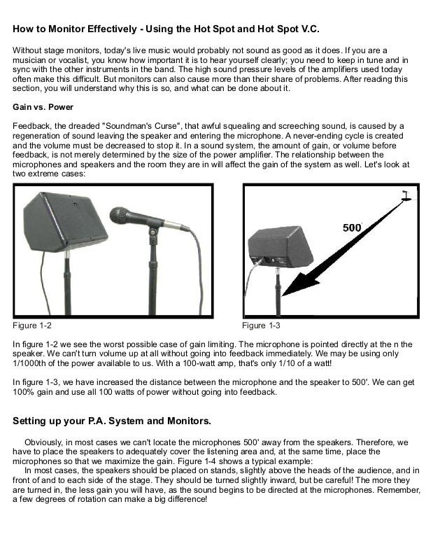 Figure 1-5 shows a monitor speaker on stage, in very close proximity to the microphone. If we were to