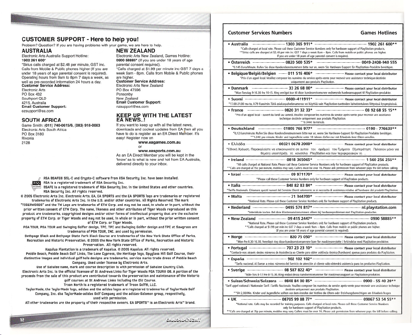 See back page of this manual for Customer Service Numbers and Games Hotline Numbers.