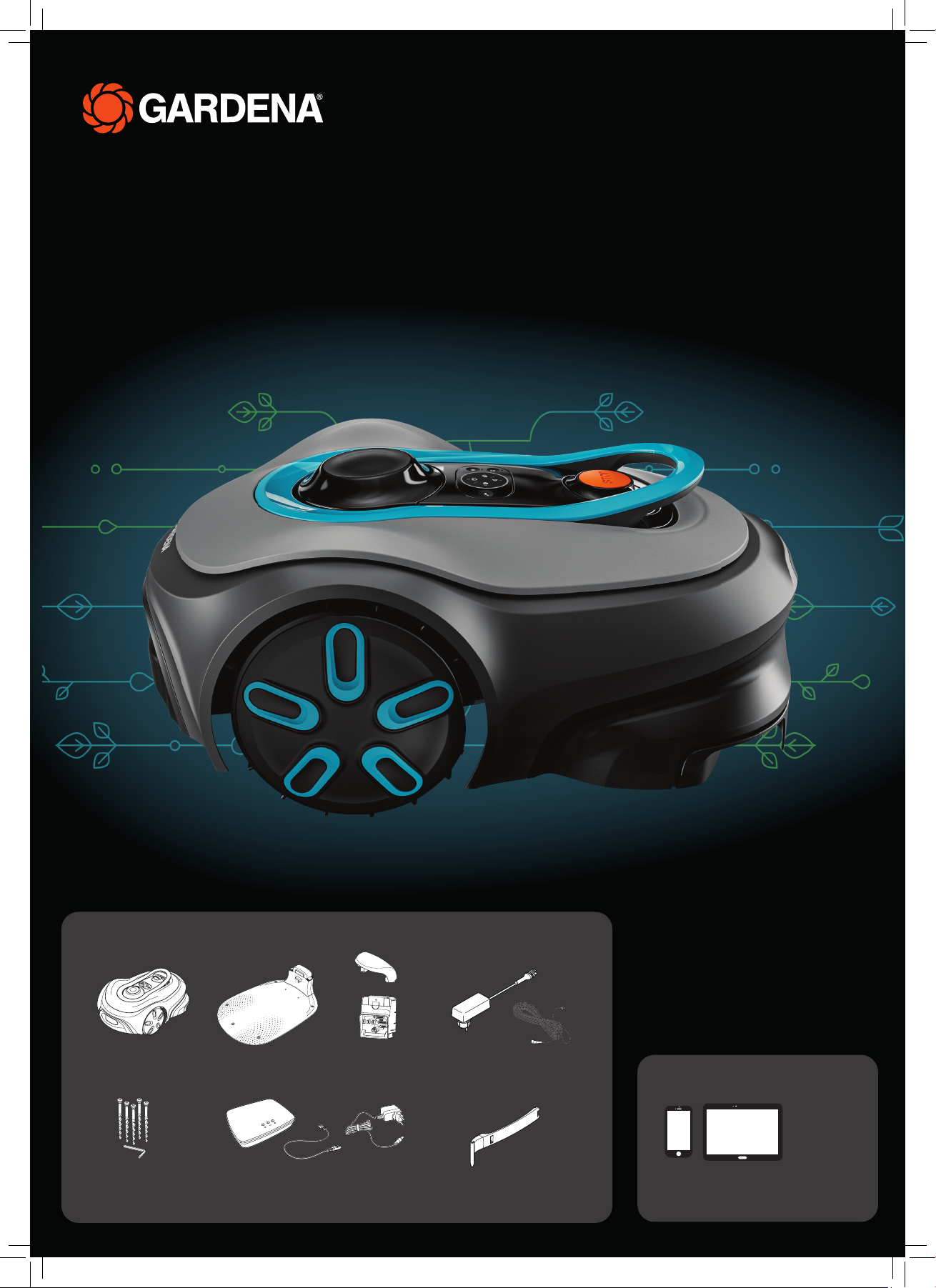 W skład systemu wchodzi robot koszący, stacja ładująca i router GARDENA smart Gateway. W przypadku instalacji wirtualnych granic