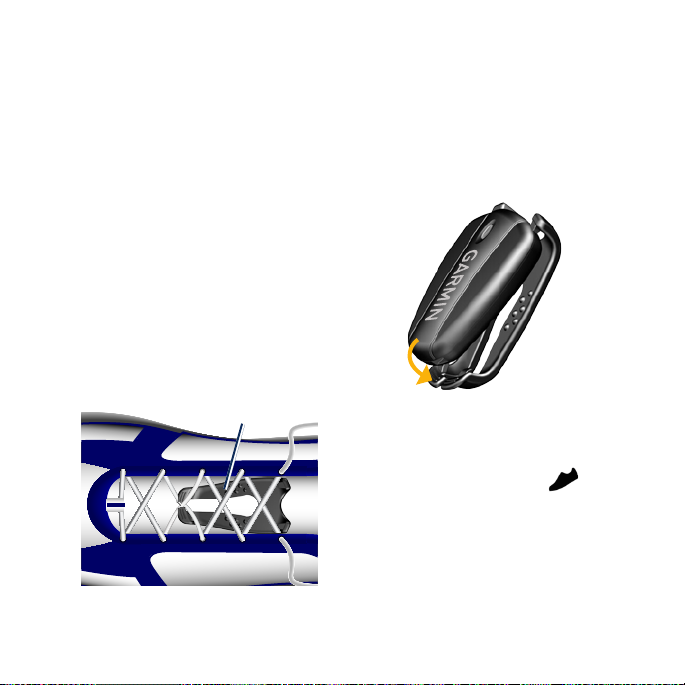 5. Sæt Foot Pod’en i snørebåndsclipsen. Foot Pod’en skal pege