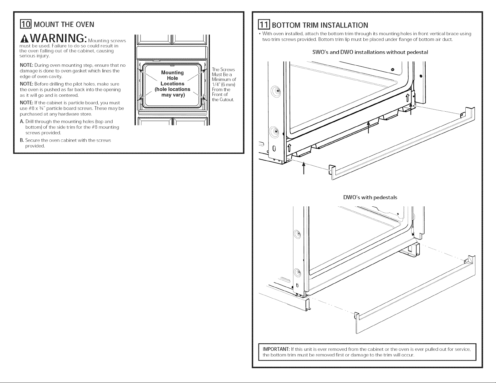 racks. Remove the bottom trim from the top of the oven. It will be installed at the end of the installation