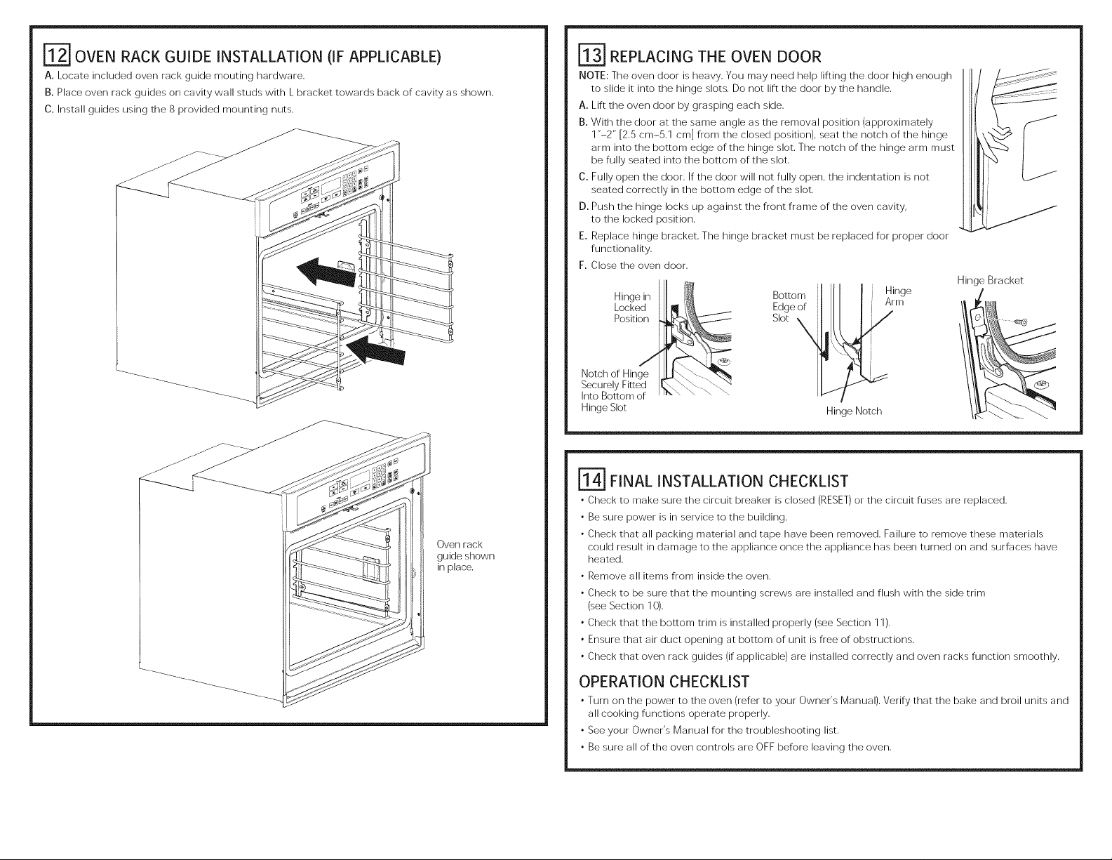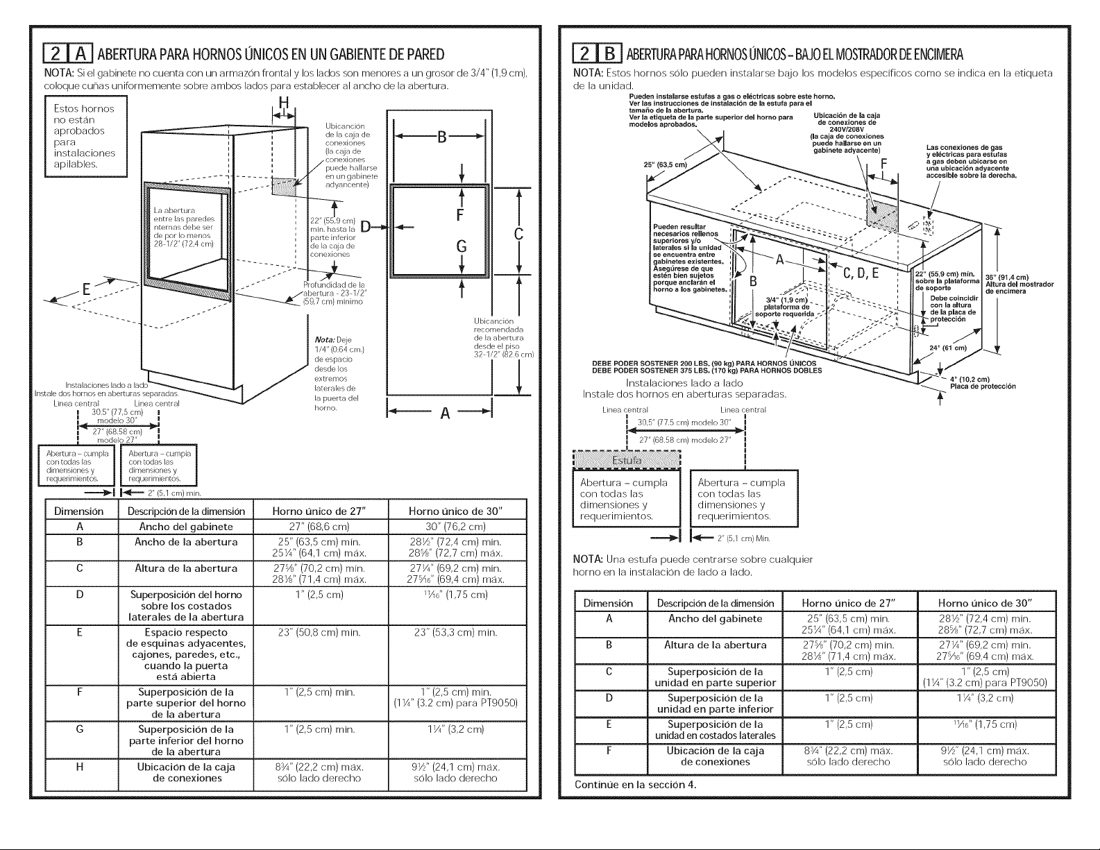 must support 200 Ibs (91 kg). For double ovens, the