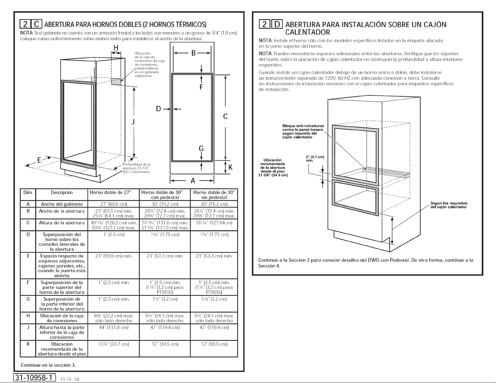 A double oven may be irrstalled in a cabinet alone or above a warmirrg drawer. See the label on top of the
