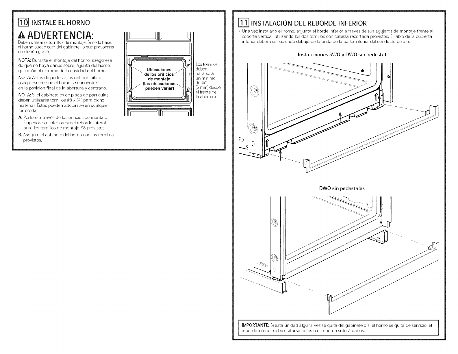 • Una vez instalado el homo, ac!junte el borde inferior a traves de sus agL_jeros de montaje frente al