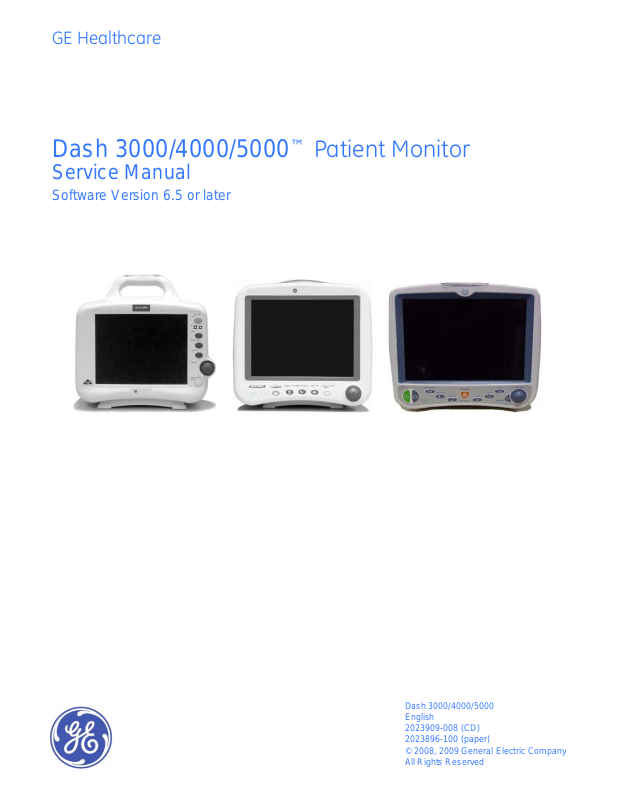 NOTE: The information in this manual only applies to Dash 3000/4000/5000 patient monitors with software version 6.5 or