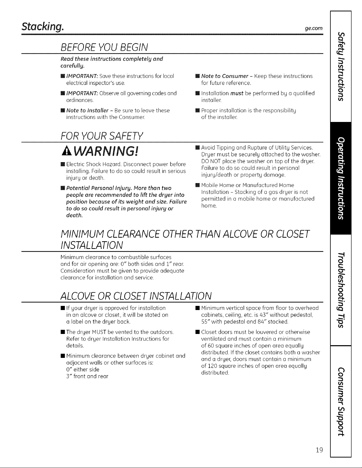 This dryer must be properly installed and located in accordance with the Installation Instructions