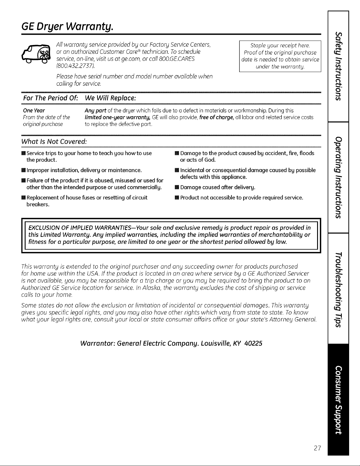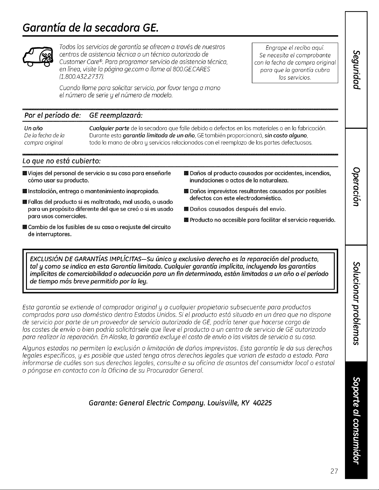 durante horas normales de oficina. GEConsumerHome Servicesestarc]a0n ahi cuando su garantia termine.