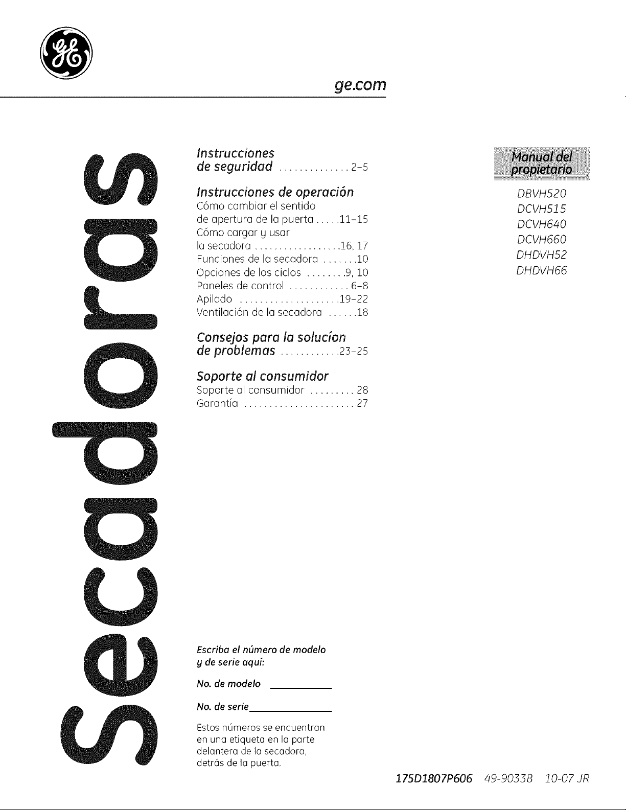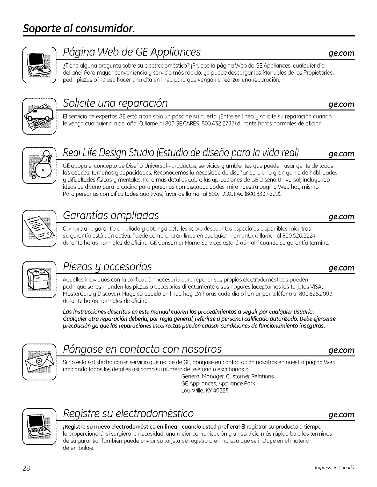 en linea, visite la pdgina ge.com o Ilame a1800.GECARES