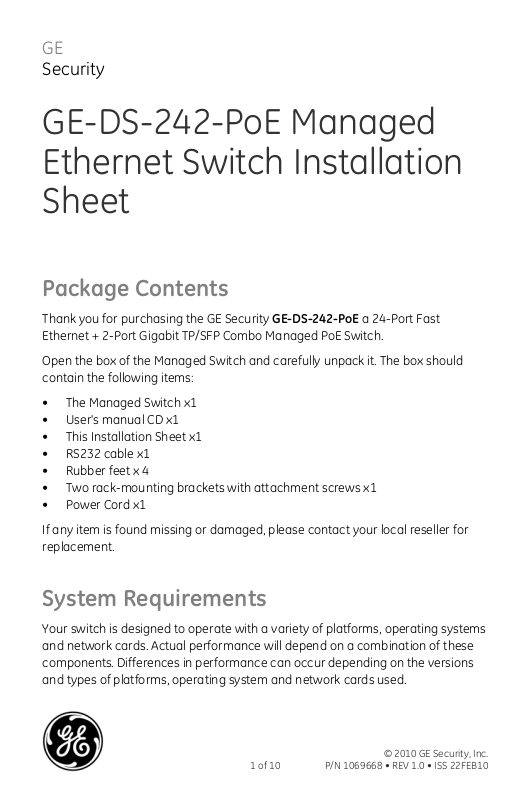 Thank you for purchasing the GE Security GE-DS-242-PoE a 24-Port Fast