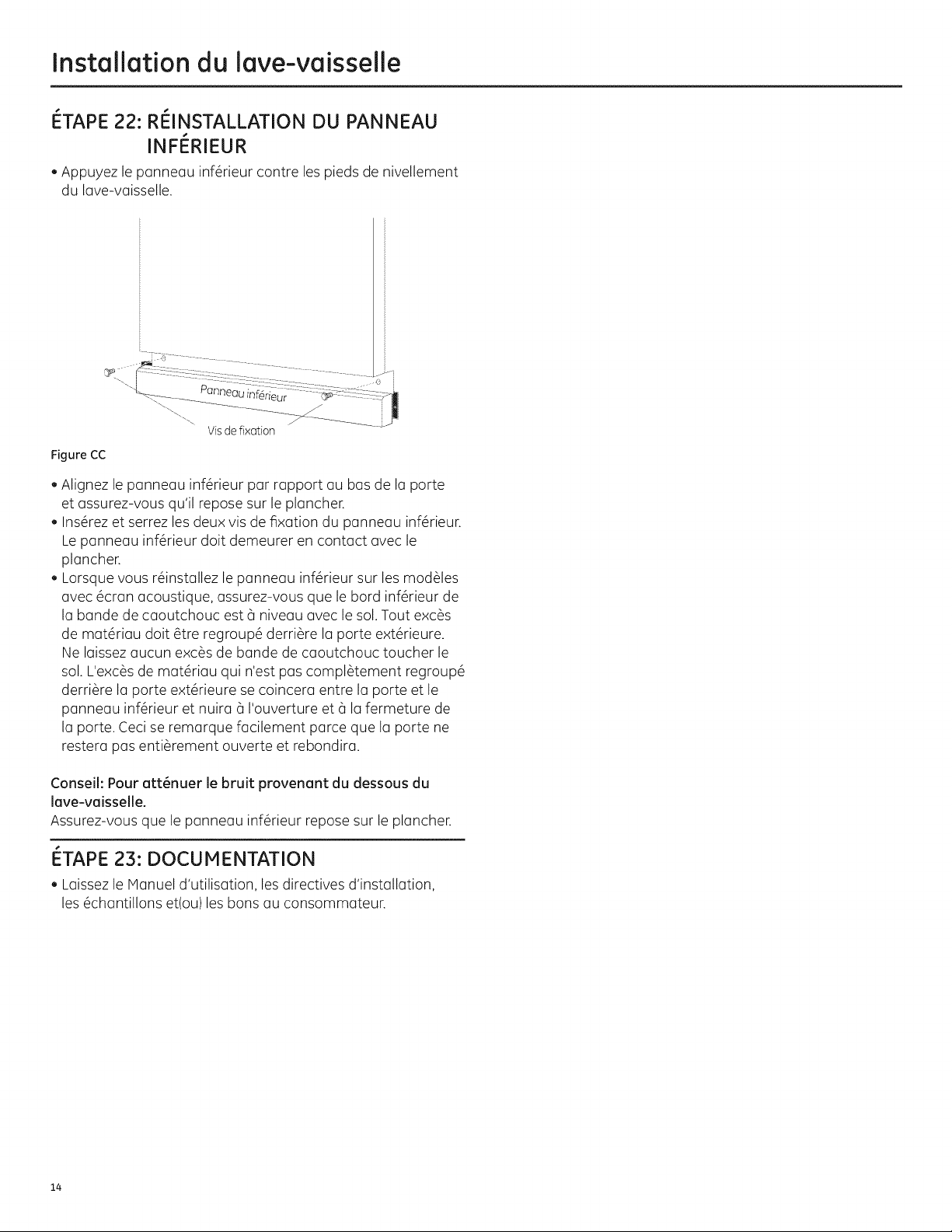 correctement le long de la partie inf@ieure du lave-vaisselle.