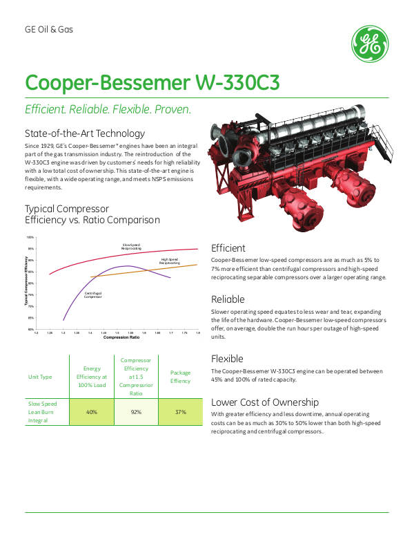 The Cooper-Bessemer W-330C3 engine can be operated between