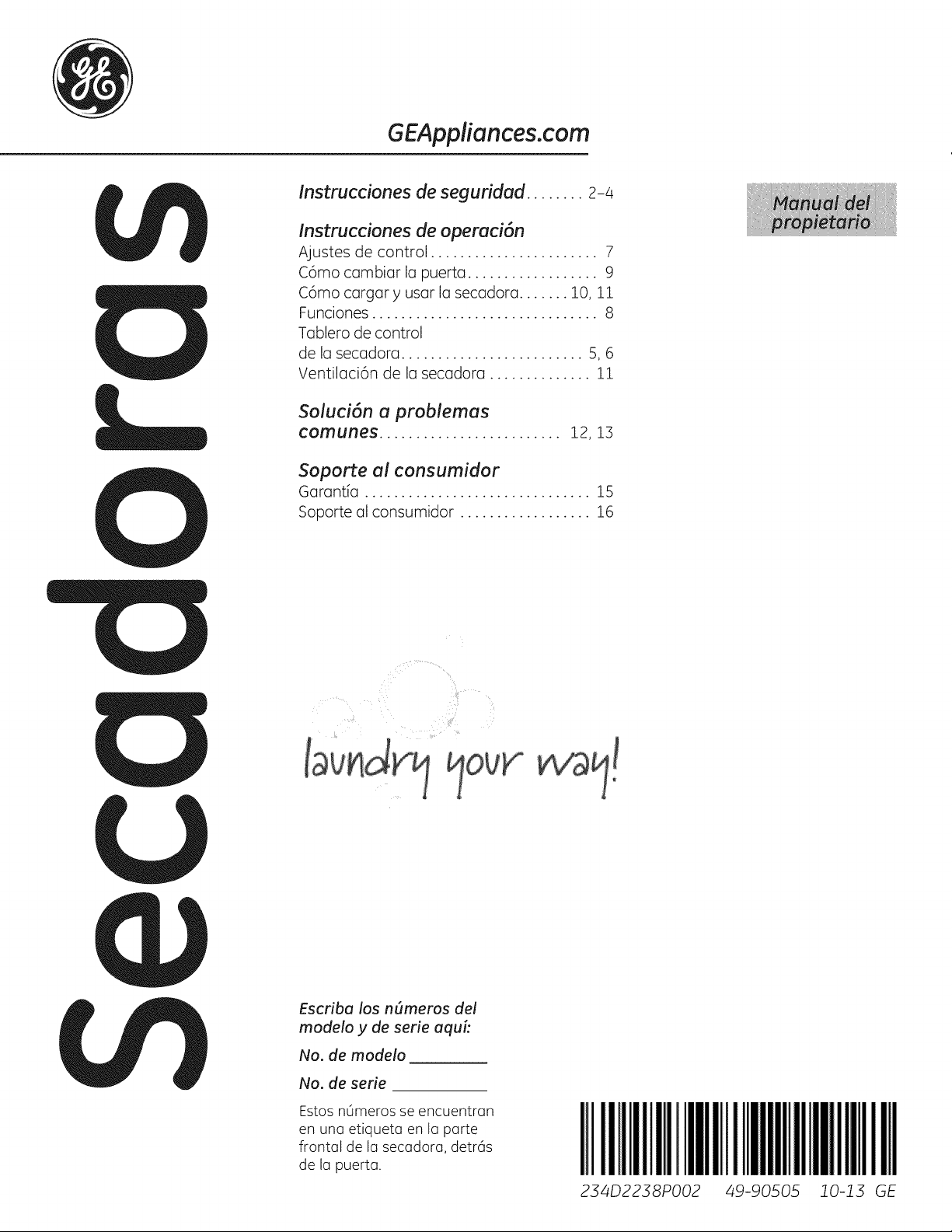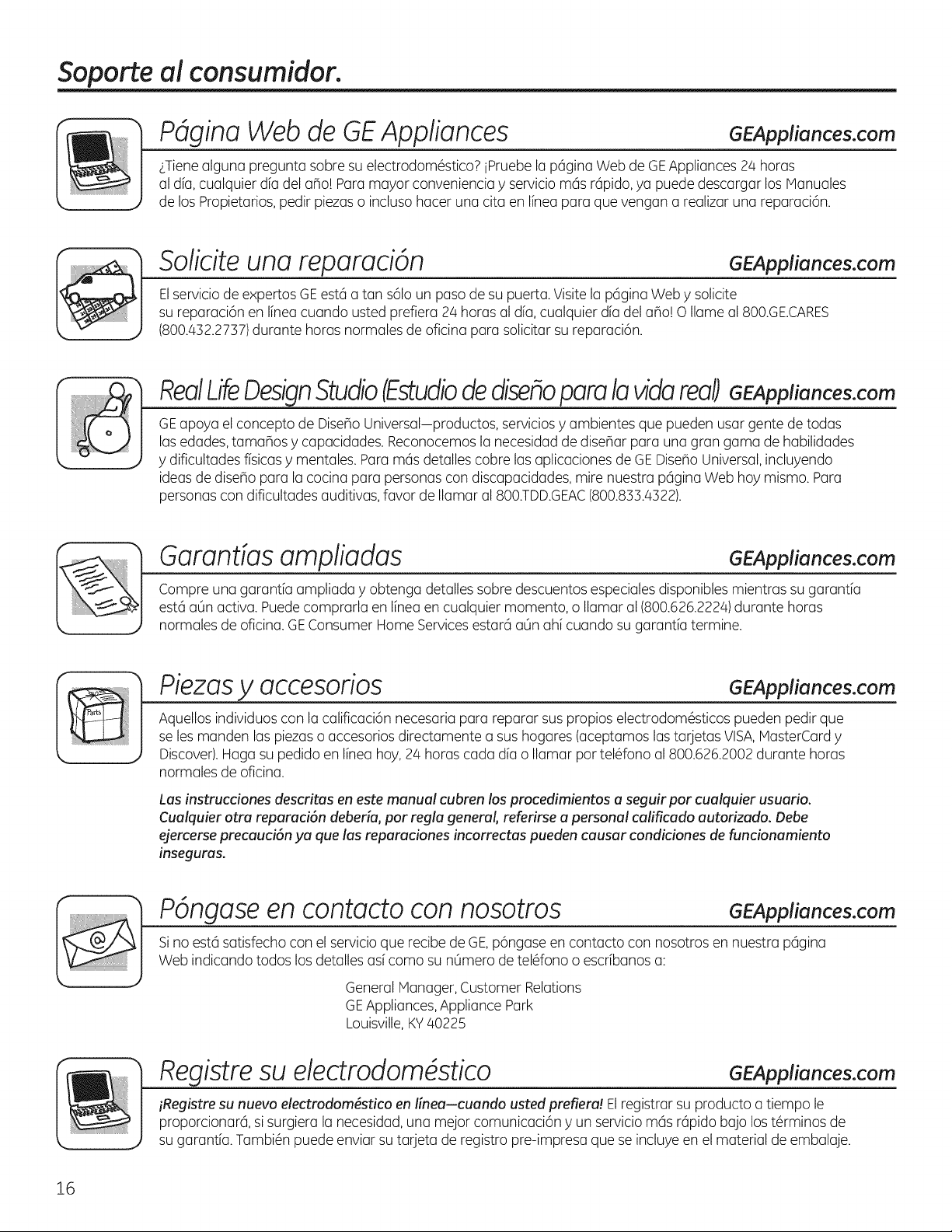 su reparaci6n en I[neacuando usted prefiera 24 horas al d[a, cualquier d[a del aho! O Ilame al 800.GE.CARES