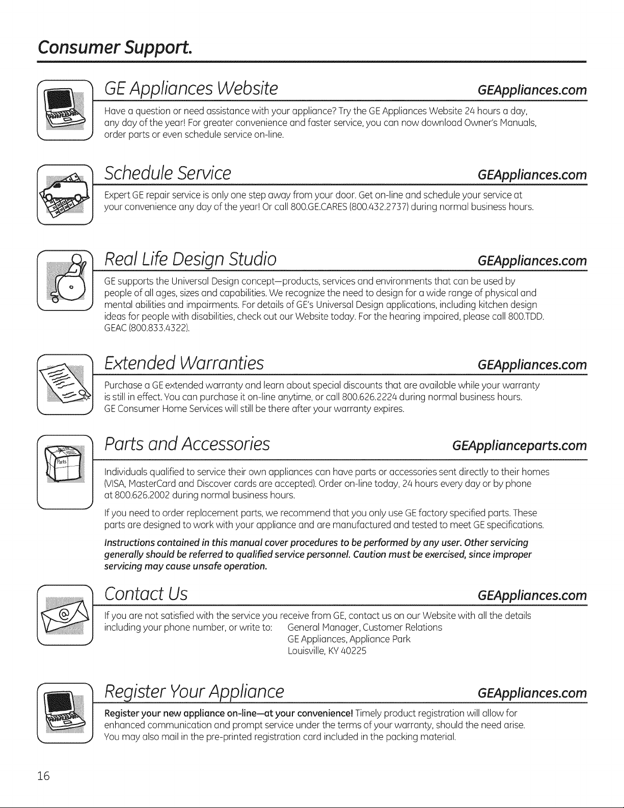 your convenience any day of theyear! Or call 800.GE.CARES(800./432.2737)during normal business hours.
