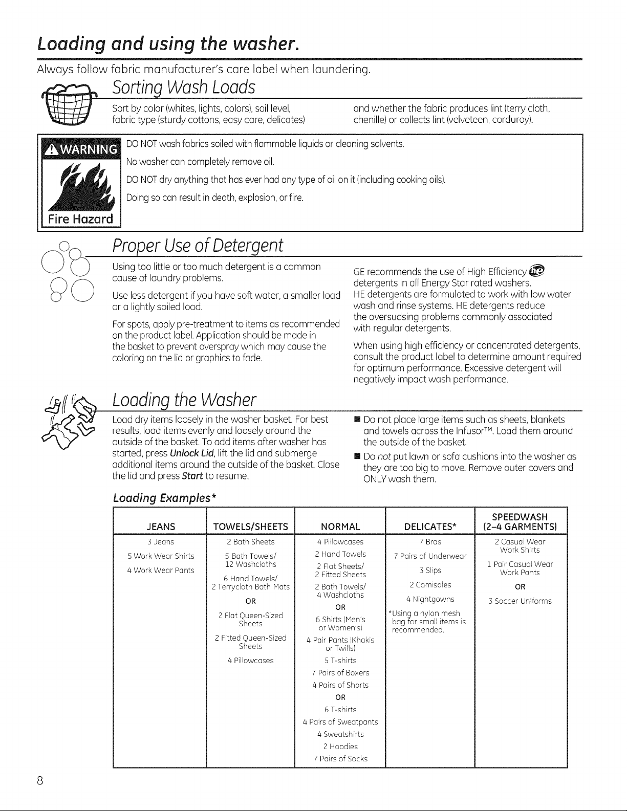 [] DONOTadd gasoline, dry-cleaning solvents, or other flammable or explosive substances to the wash water. These