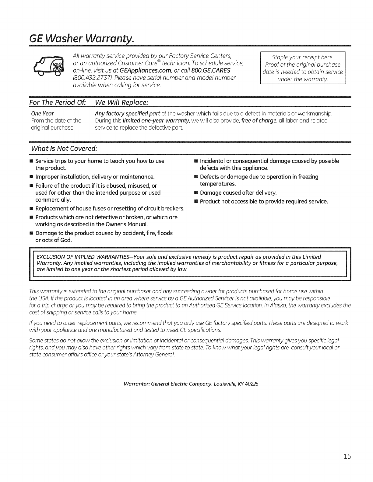the USA.Ifthe product is located in an area where service bya GEAuthorized Serviceris not available,you may be responsible