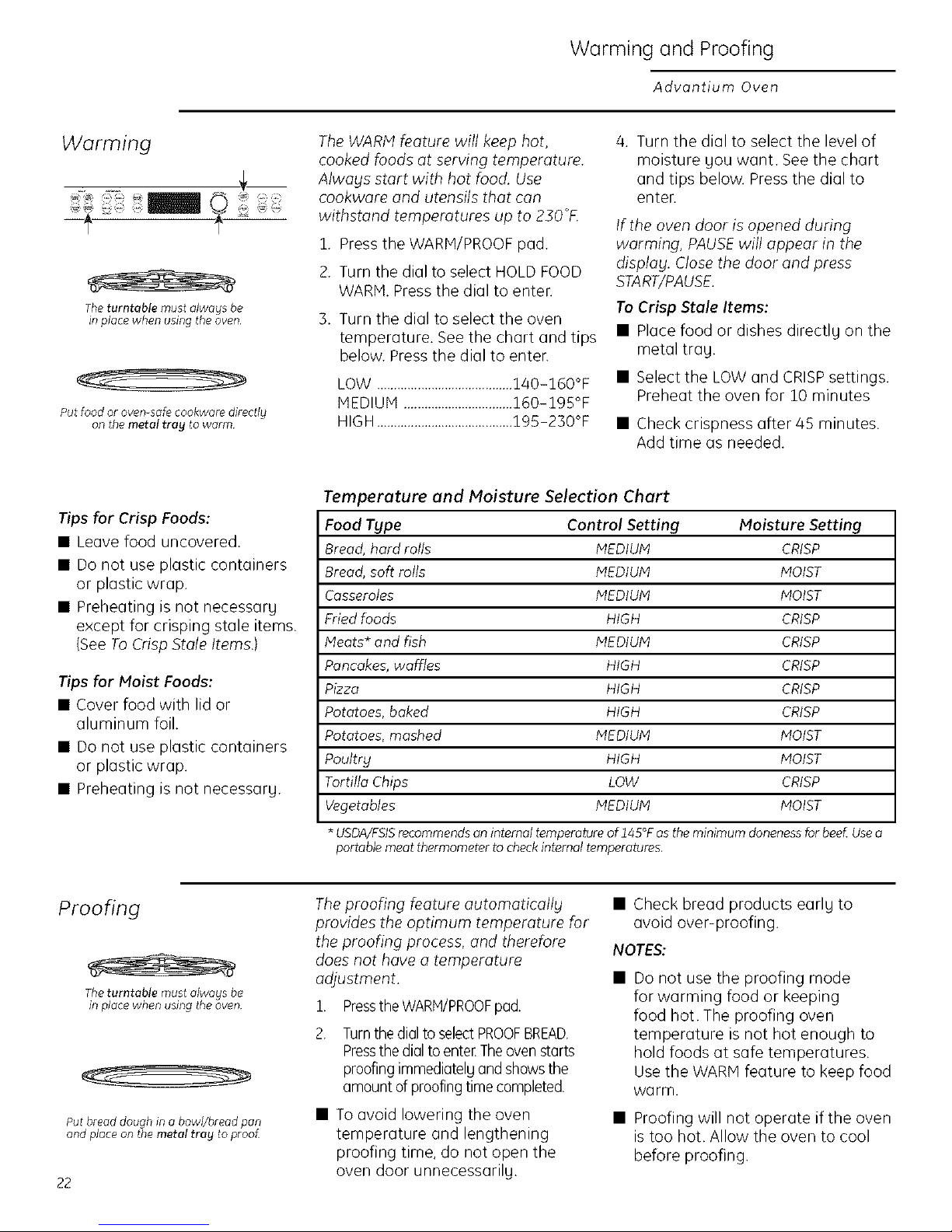 Warming and proofing ................. 22