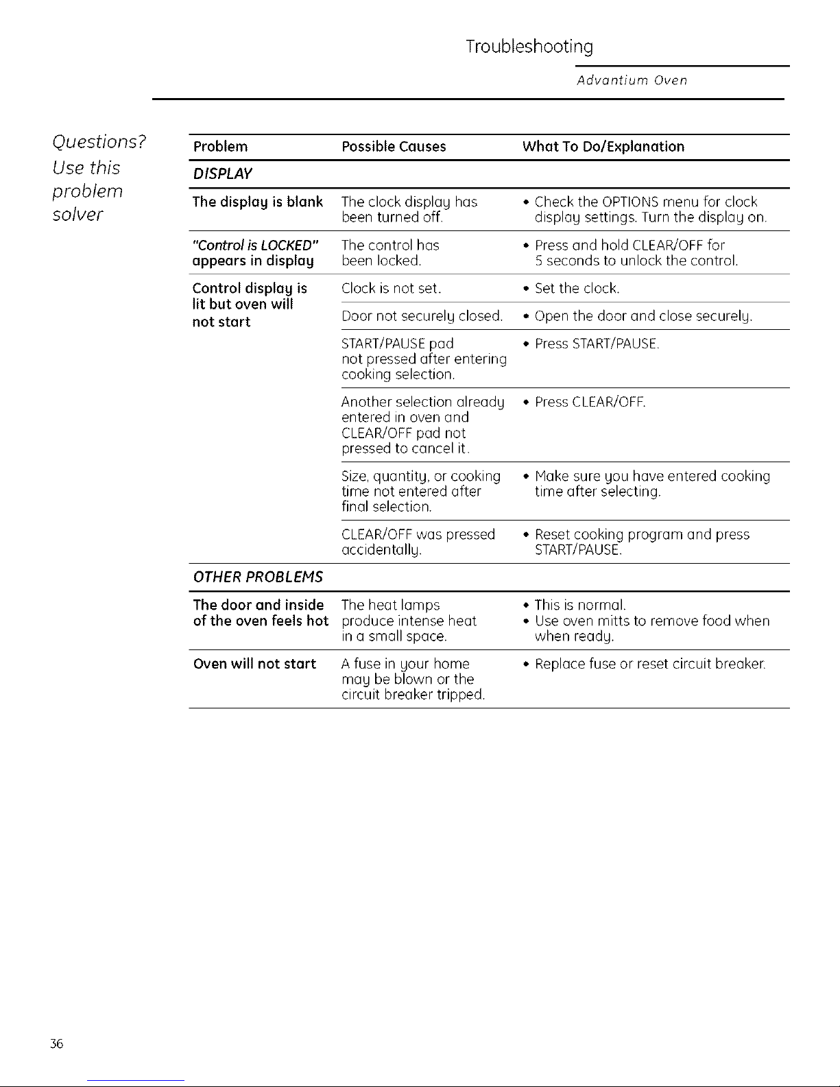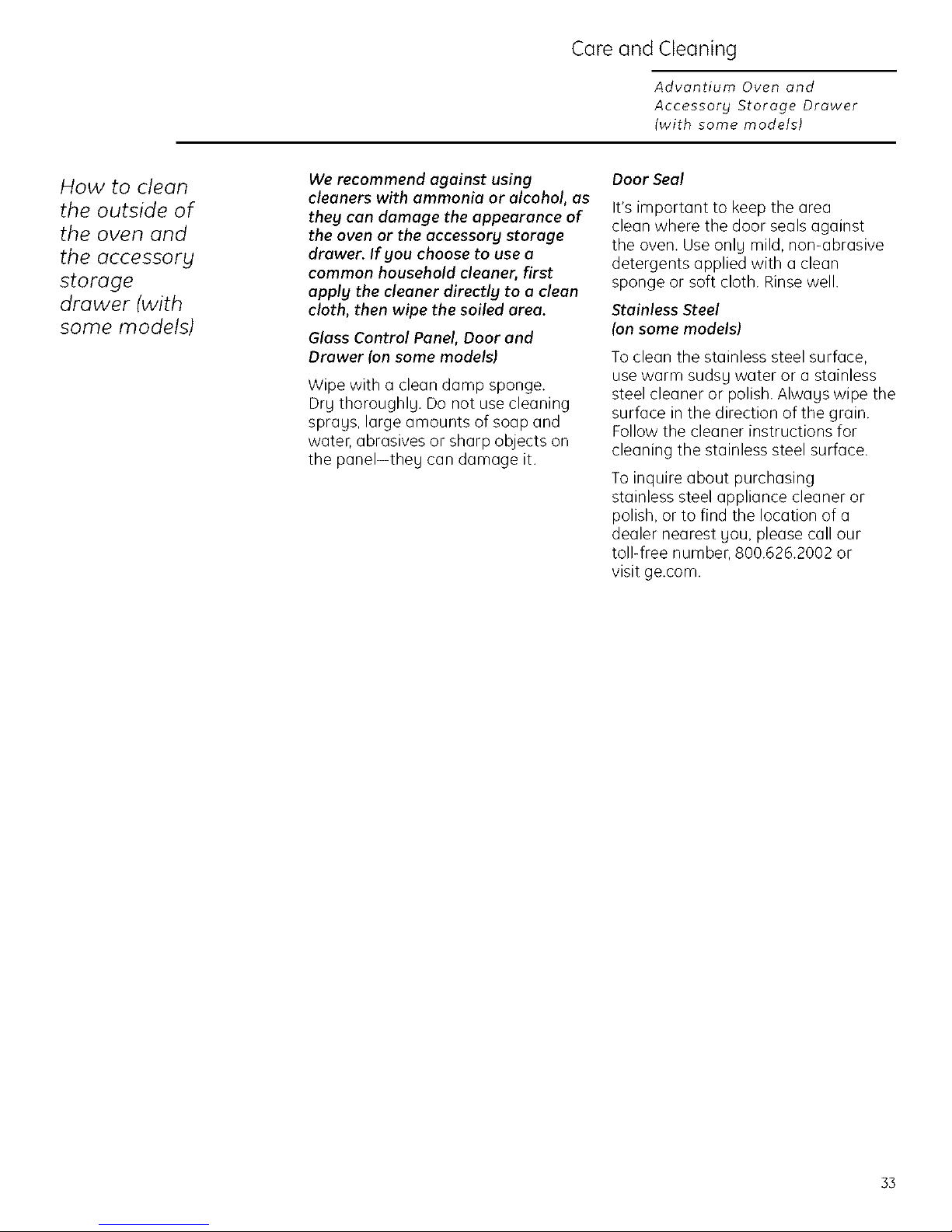 YOUR MONOGRAM ADVANTIUM OVEN WARRANTY