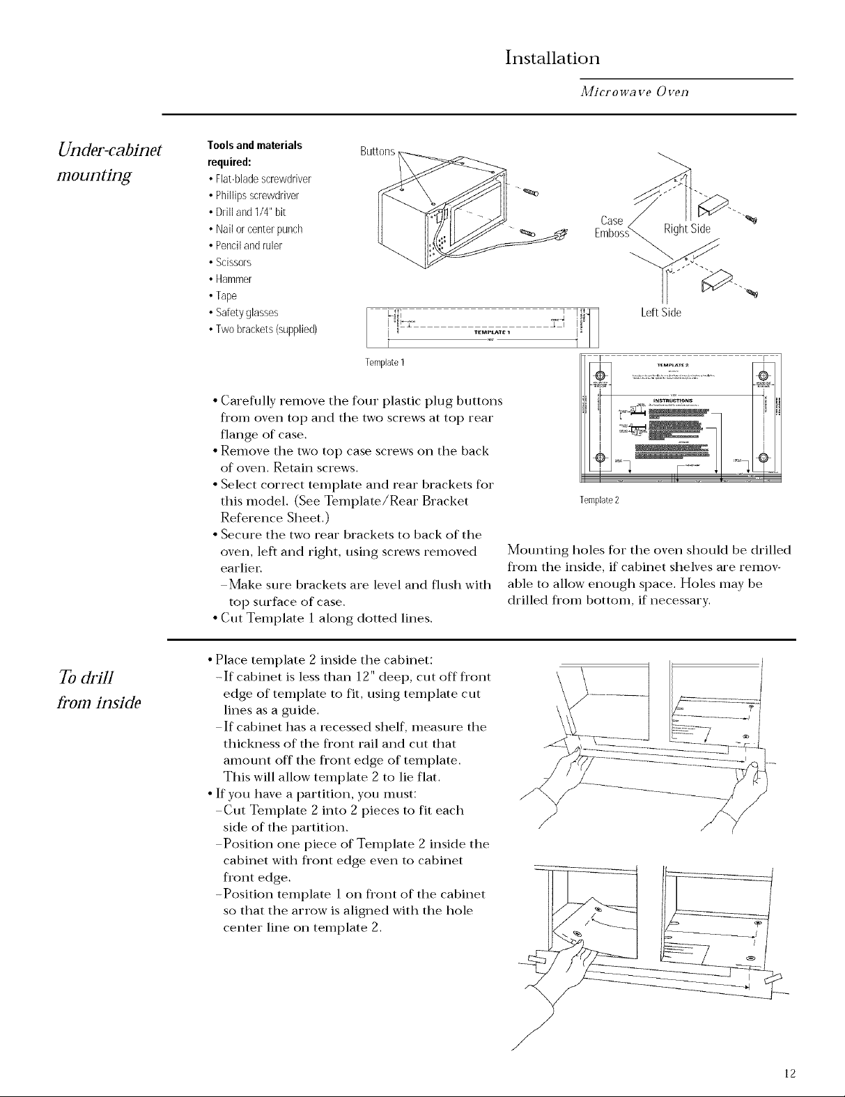 • Position Template 2 flat against underside of