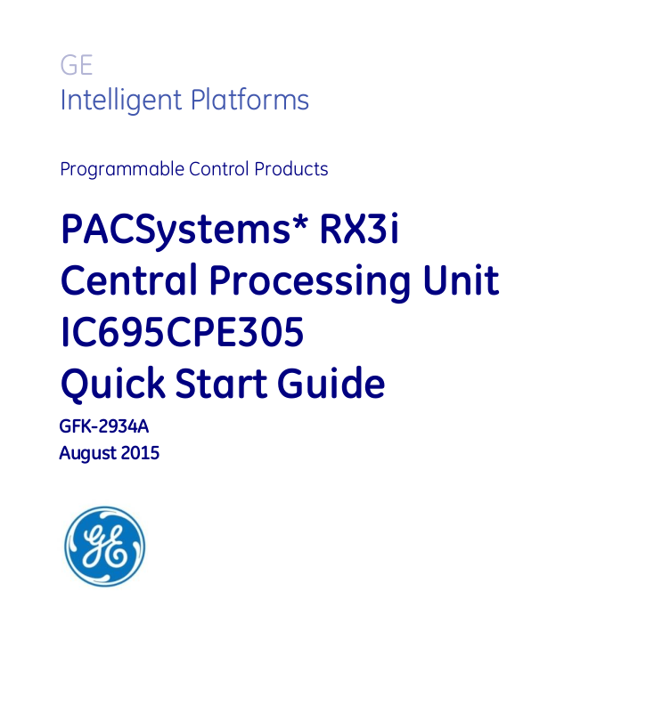 i PACSystems* RX3i Central Processing Unit IC695CPE305Quick Start Guide GFK-2934A