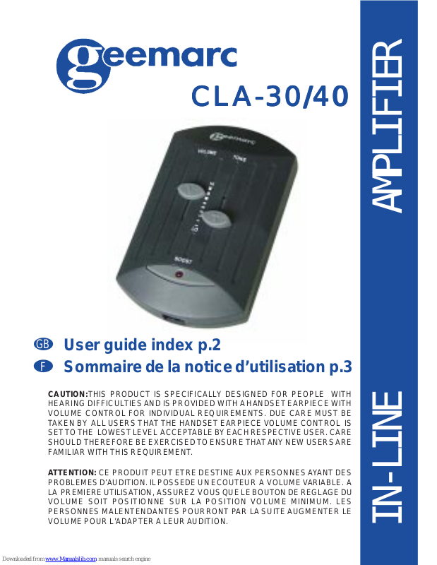 IMPORTANT: Le CLA-30/40 ne peut pas être utilisé avec un téléphone