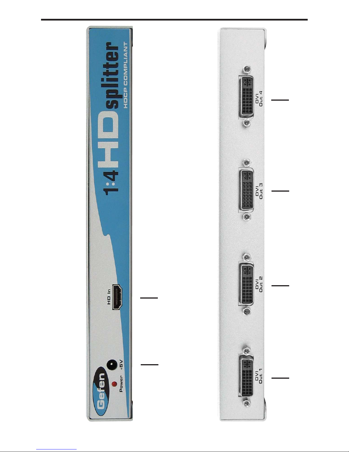 NOTE: The 1x4 HD Splitter only passes digital video, and does not support audio in