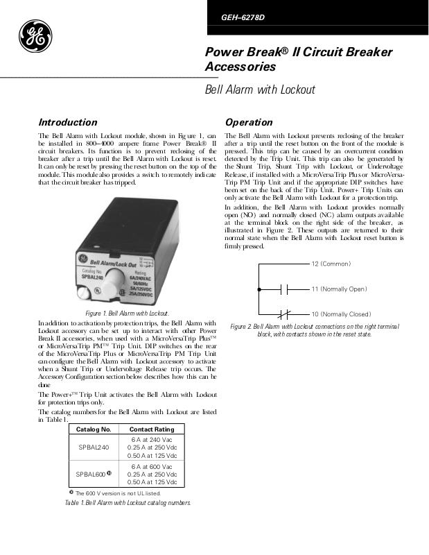breaker to trip, the contacts of the Bell Alarm–Alarm Only