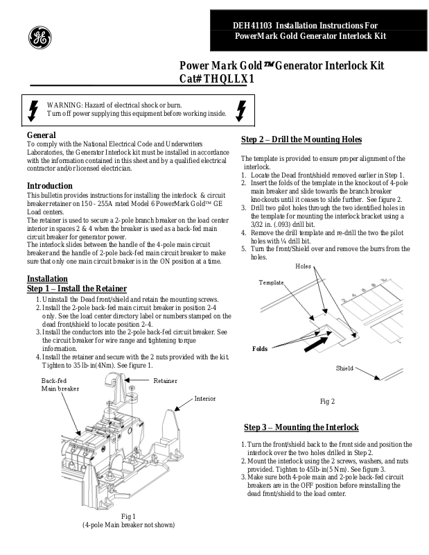 Laboratories, the Generator Interlock kit must be installed in accordance