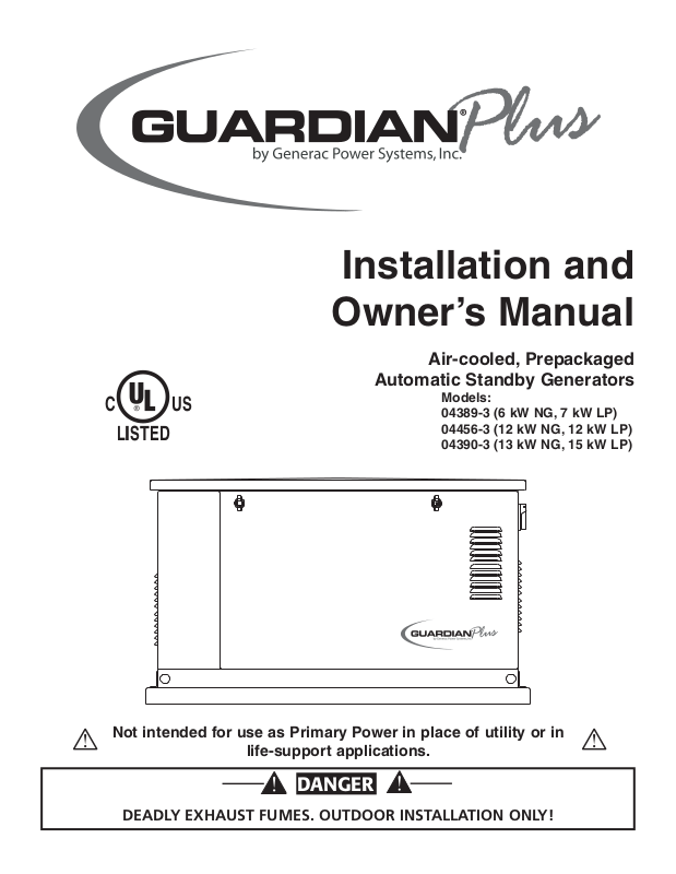 Not intended for use as Primary Power in place of utility or in