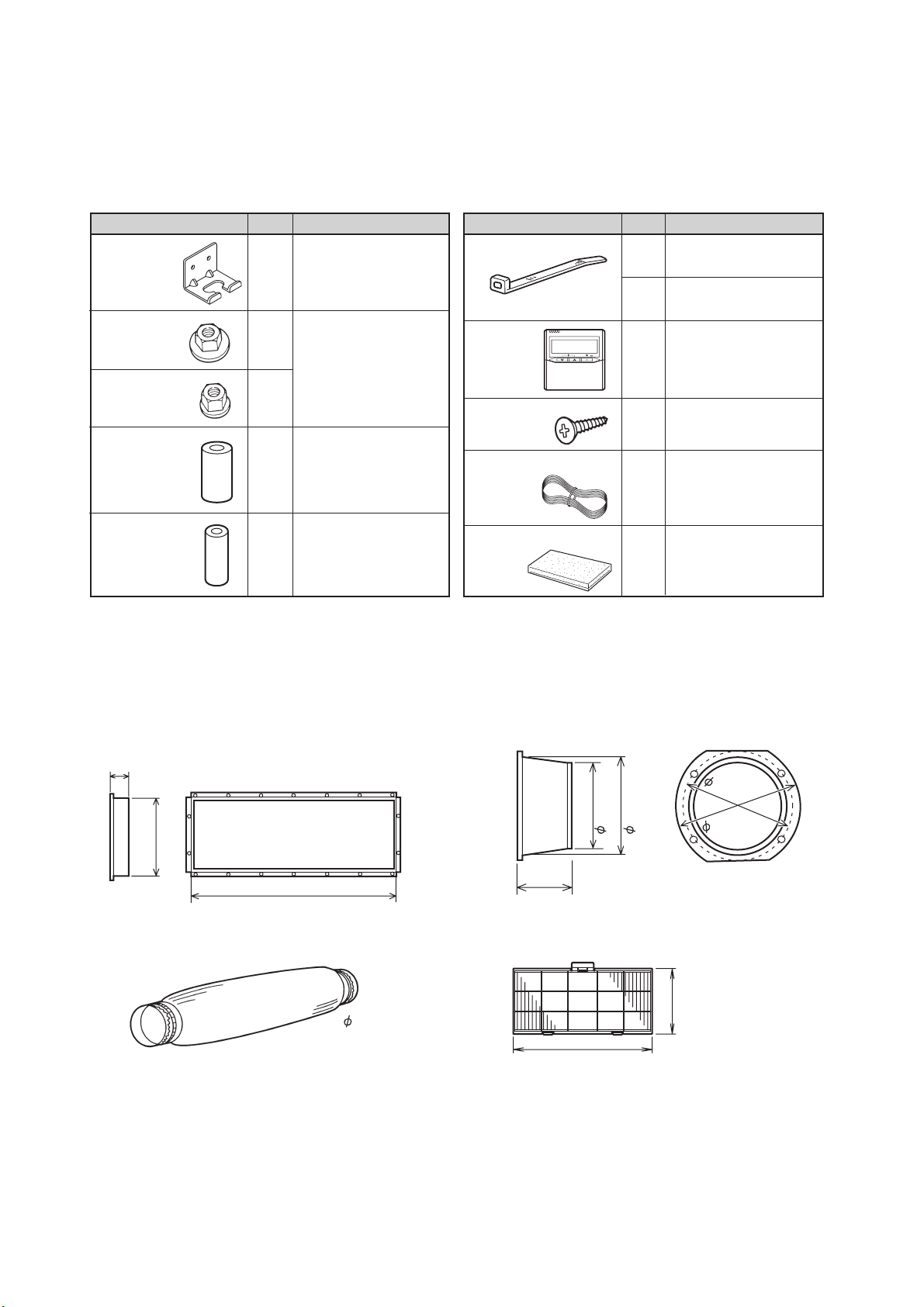 When connecting the square duct and round duct, use the optional square flange or round flange and flexible duct.