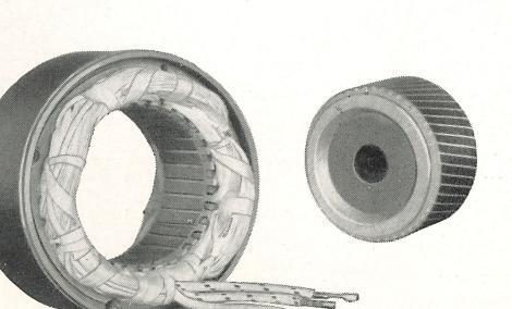 without riveted or soldered connections. The ventilating fans are cast integral with the winding and end rings to assure the most direct and effective cooling. This rotor construction has proved its superiority in millions of fractionalhorsepower motors.